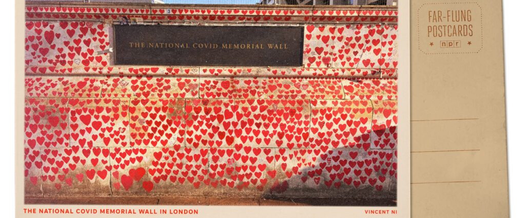 Britain’s 1,640-foot-long National Covid Memorial Wall stretches along the River Thames, with over a quarter million hearts representing the lives lost during the pandemic — across from Parliament.