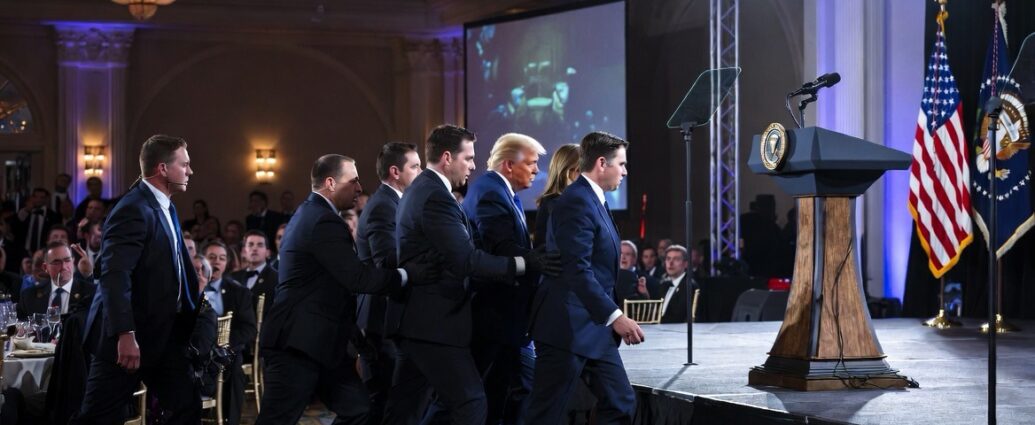 President Donald Trump, First Lady Melania Trump, and Vice President JD Vance were rushed off the stage by Secret Service agents Saturday night after shots were fired at the White House Correspondents’ Dinner at the Washington Hilton in Washington, D.C. — one of the most prominent annual gatherings of American political and media figures. A shooter was confirmed dead. President Trump is safe. All Cabinet members are reported unharmed.